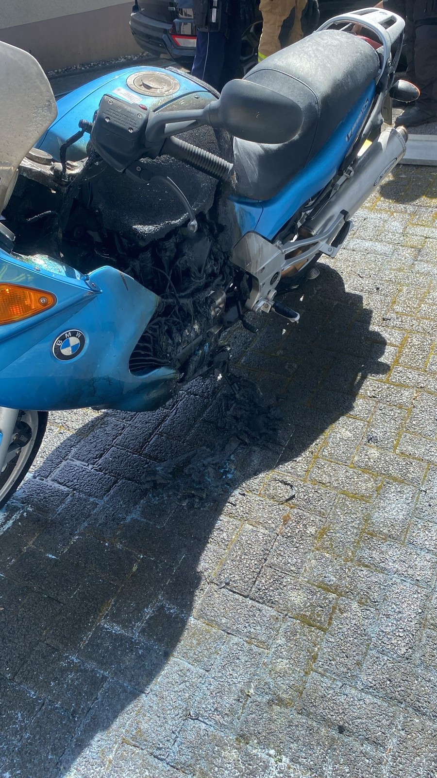 Die Feuerwehr führte im Anschluss Nachlöscharbeiten durch. Zudem wurde die Batterie des Motorrads abgeklemmt, auslaufende Betriebsmittel abgestreut und das Fahrzeug mit einer Wärmebildkamera auf mögliche Glutnester kontrolliert.